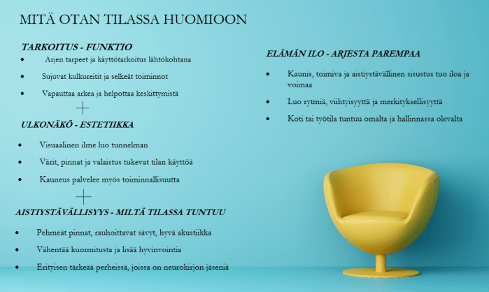 • Aistiystävälliset tilaratkaisut